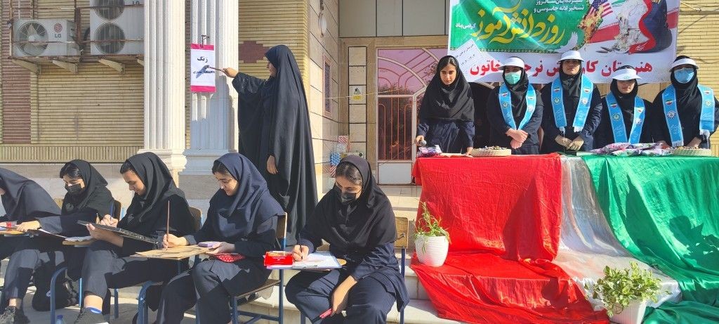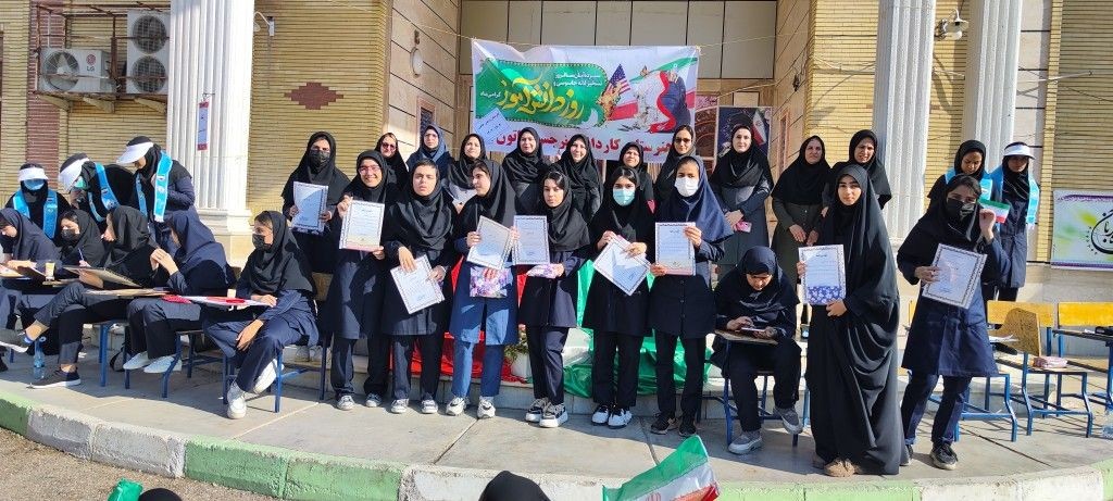 نواختن زنگ استکبارستیزی تقدیر از فعالین نماز ،حجاب برتر و برگزیدگان جشنواره ی دنیای بدون اسرائیل ،نقاشی هنرجویان با موضوع روز دانش آموز و طوفان الاقصی در ویژه برنامه ۱۳ آبان روز دانش آموز هنرستان نرجس خاتون