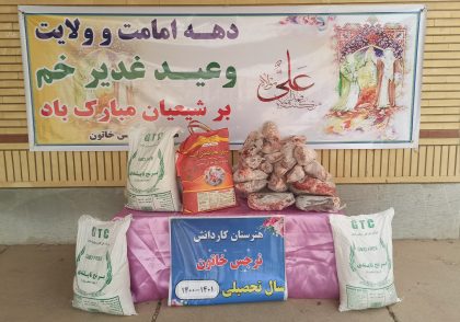 توزیع بسته های معیشتی بین دانش آموزان بی بضاعت هنرستان نرجس خاتون به مناسبت هفتهولایت