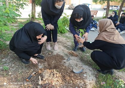 نهال اهدا شده توسط خانم نامی فرد،با همکاری هنرجویان پایه یازدهم تولید محتوای آموزش الکترونیکی و خانم شهاوند سر ساعت درس کارآفرینی،کاشته شد.