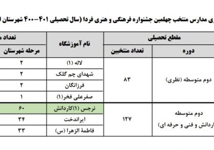 افتخارات هنرجویان هنرستان نرجس خاتون در جشنواره فرهنگی هنری فردا خرداد ۱۴۰۱