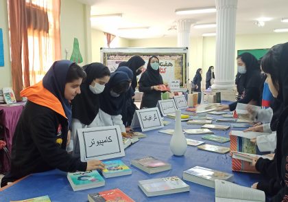 بمناسبت هفته کتاب و کتابخوانی هنرجویان هنرستان نرجس خاتون از نمایشگاه کتاب کانون فرهنگی تربیتی شهید مطهری بازدید نمودند .